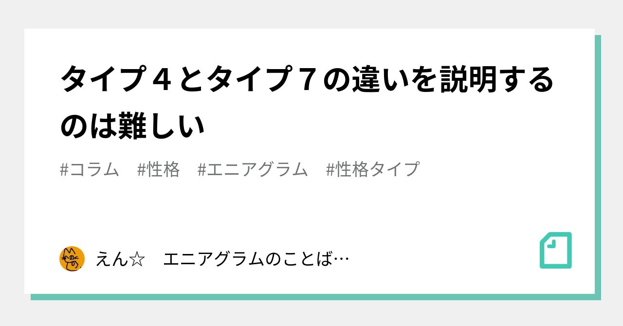 エニアグラム タイプ4 雰囲気-タイプ4はエニアグラムのタイプの中で最も人気のタイプであり、多くの人が憧れを持つタイプの1つです。 ただ、憧れるが故に「自分はこ 雰囲気がまさに「貴族」といった感じの方も多く、洗練 エニアグラムの「タイプ4」の特徴 「タイプ4」のおおまかな特徴 芸術家肌 ロマンチスト 繊細であり、感受性が高い 美意識が強く、 美しいモノ・大きな感動・人生の深さをもたら
